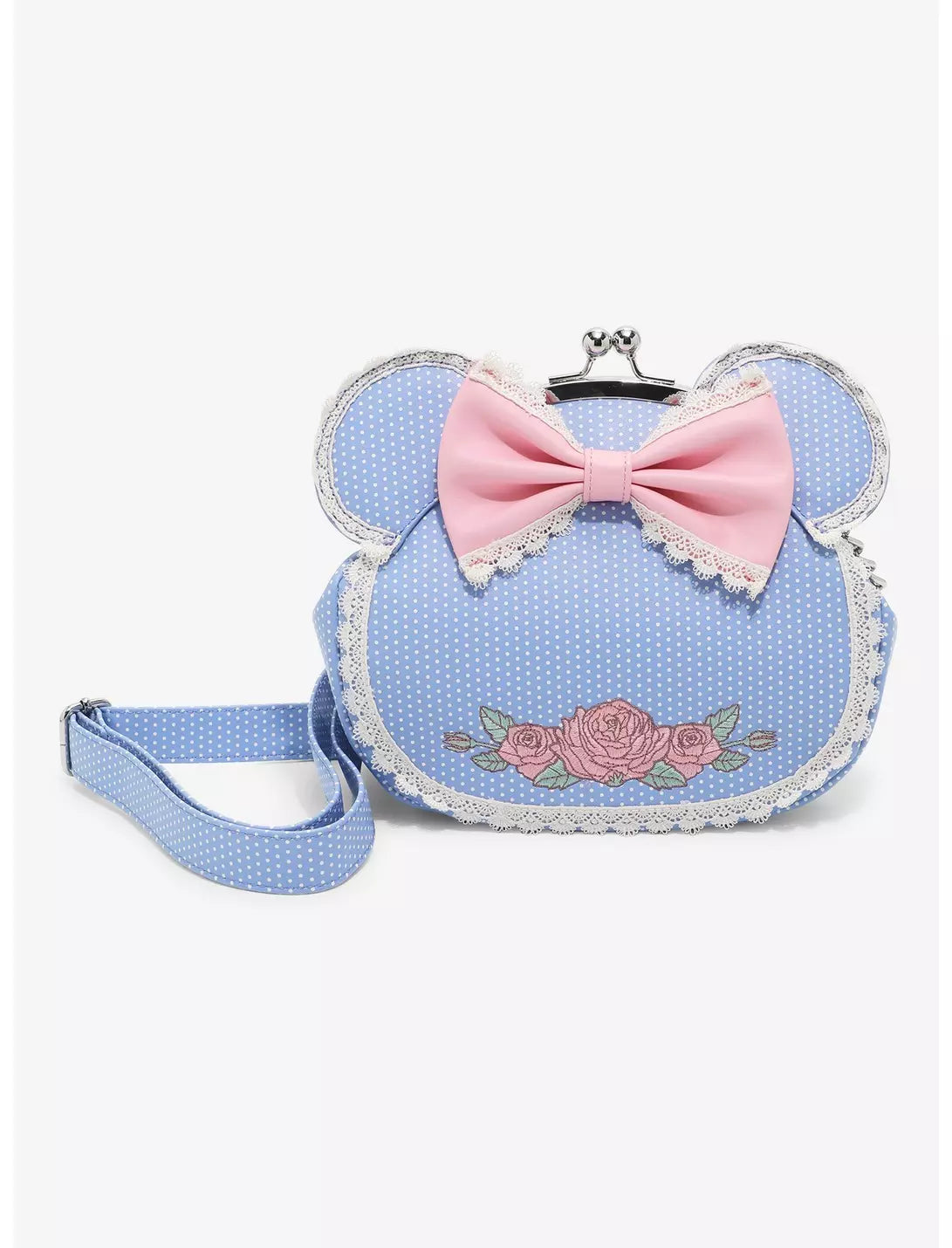Ajoutez une touche Disney chic à votre tenue avec ce sac bandoulière ! Orné de fleurs brodées, le devant comprend également des oreilles figuratives de Minnie Mouse et un nœud avec bordure en dentelle. Avec une fermeture Kiss Lock et une bandoulière réglable, ce sac à main est parfait pour les fans de la souris emblématique. N'oubliez pas le mini sac à dos et le portefeuille assortis vendus séparément !