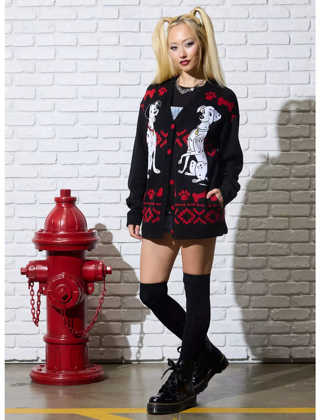 Vous allez craquer pour ce gilet adorable ! Inspiré des 101 Dalmatiens, ce gilet ample est orné de broderies de Pongo et Perdita aux détails duveteux, rehaussées de motifs d'os rouges, d'empreintes de pattes et de formes géométriques. Il possède des poches et une fermeture boutonnée sur le devant.