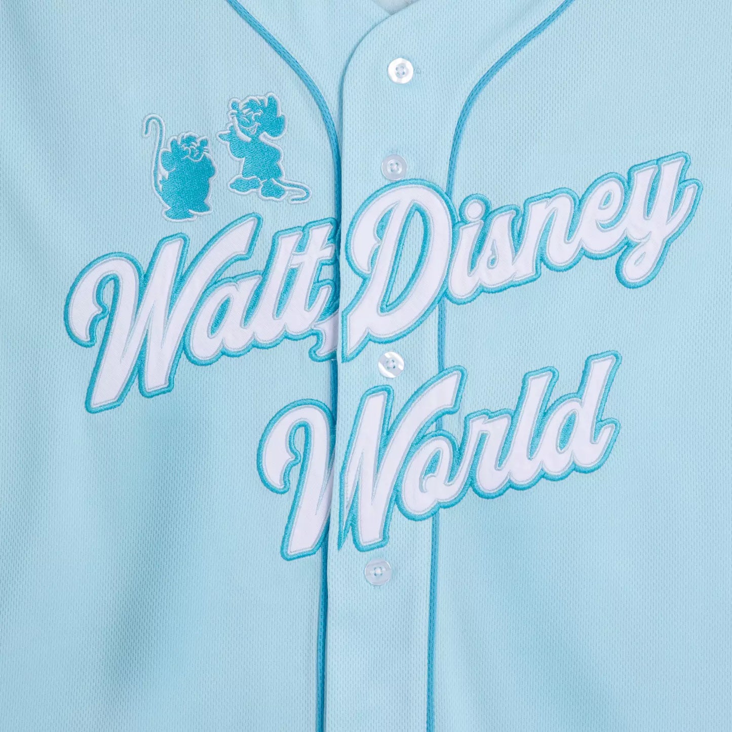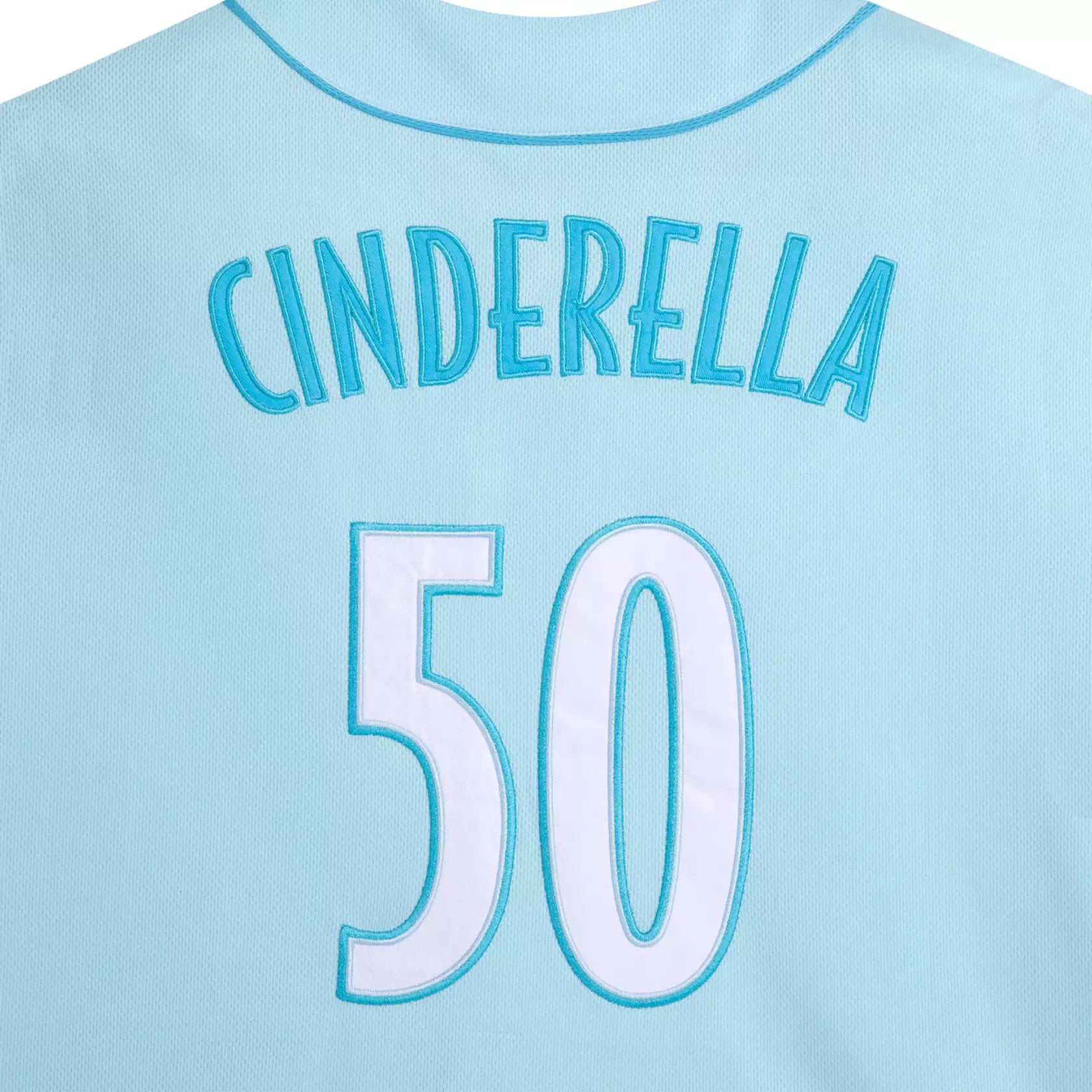 C'est un tout nouveau jeu avec ce maillot de baseball Cendrillon au style traditionnel avec une touche royale. Avec « Walt Disney World » plus Jaq et Gus sur le devant, une pantoufle de verre et le château de Cendrillon sur la manche, ainsi que le nom de Cendrillon et le numéro « 50 » au dos, cet adorable haut est un coup de circuit automatique.