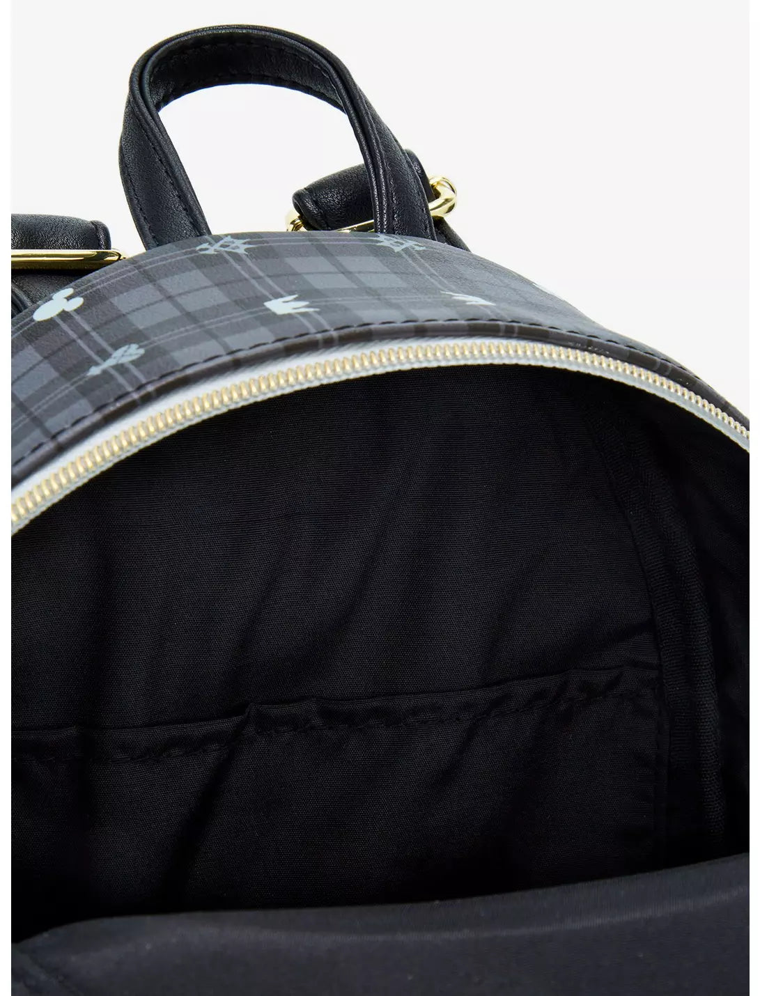 Transportez toutes vos potions et vos pièces de vaisseau Gummi dans ce mini sac à dos Kingdom Hearts ! La poche avant zippée représente le Roi Mickey Mouse posant avec une Keyblade. Le reste du sac est orné d'un motif écossais gris parsemé d'icônes du jeu. Il est doté de bretelles réglables et d'une poche intérieure.