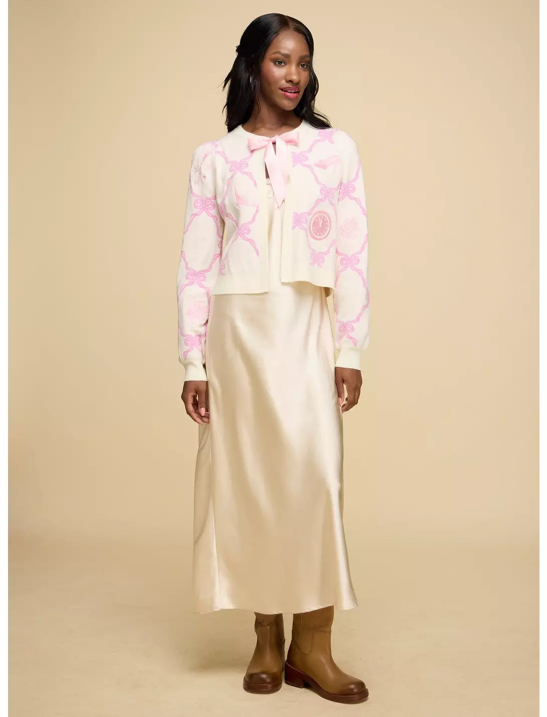 Plongez dans l'univers des princesses Disney avec ce gilet ultra mignon ! Orné de nœuds roses et d'icônes brodées inspirées de Cendrillon, Tiana, Jasmine, Ariel et bien d'autres. Fermeture par un lien en satin rose.