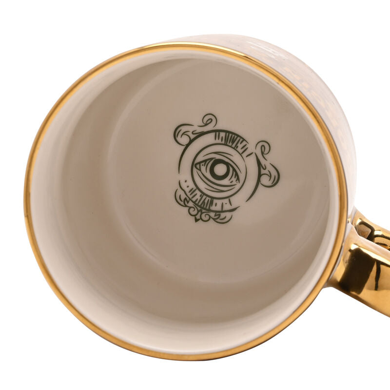 Ce mug en céramique arbore un motif orné où l'on peut lire « Artefacts obscurs : Borgin & Burkes 1863 » sur un fond sombre. Une anse dorée apporte une touche de sophistication mystérieuse. Idéal pour les fans d'Harry Potter et d'univers sombre, son esthétique saisissante sublimera vos pauses café ou thé.