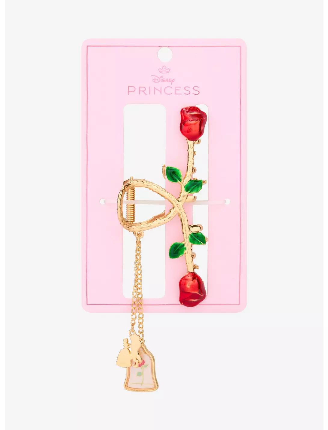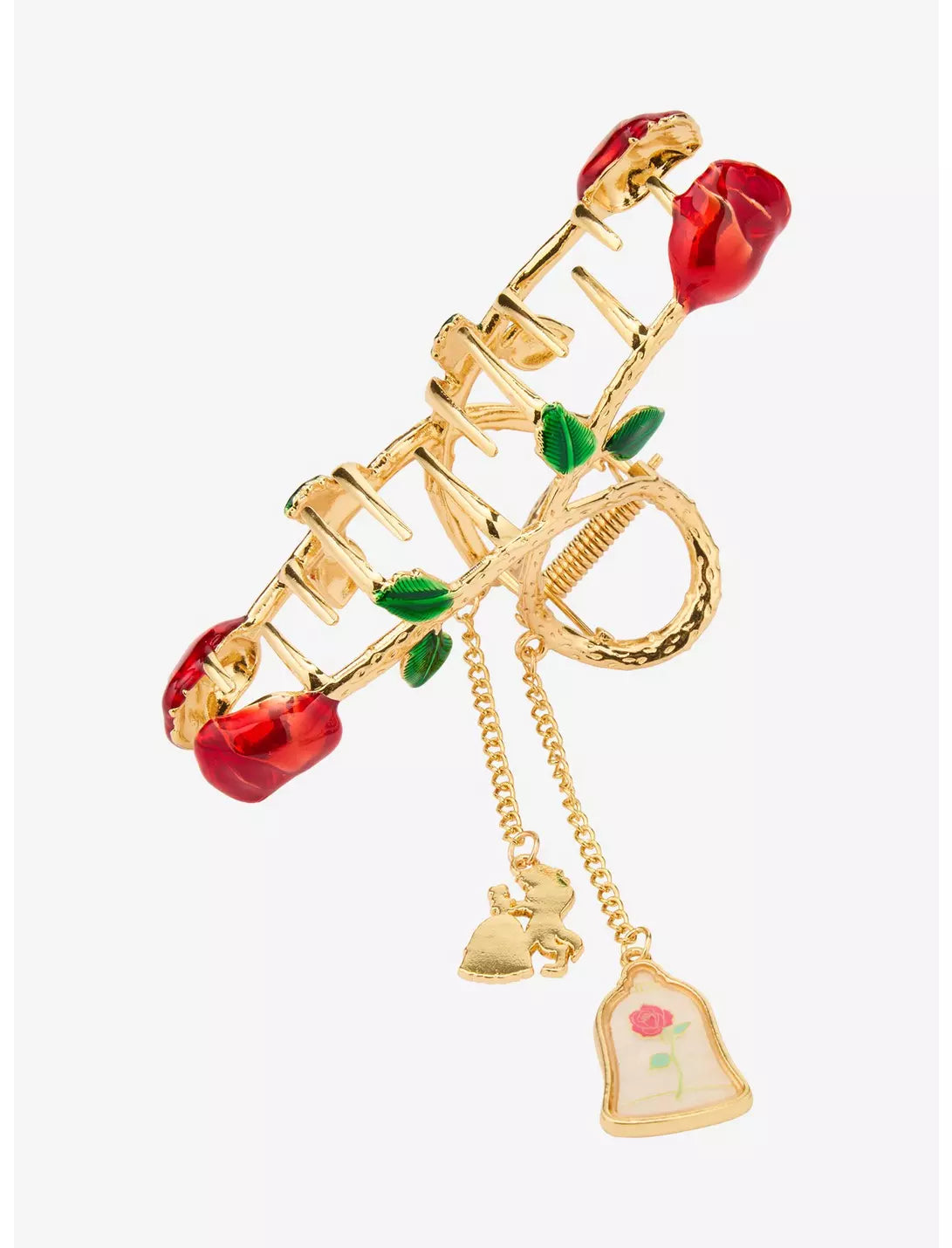 Pince à cheveux Belle et Rose pendante La Belle et la Bête