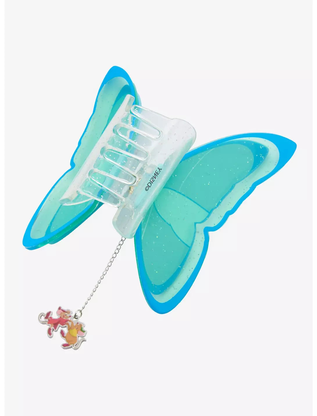 Cette pince à cheveux est façonnée en forme de papillon inspiré de la princesse Cendrillon, et ornée d'un pendentif à l'effigie de Jaq et Gus.