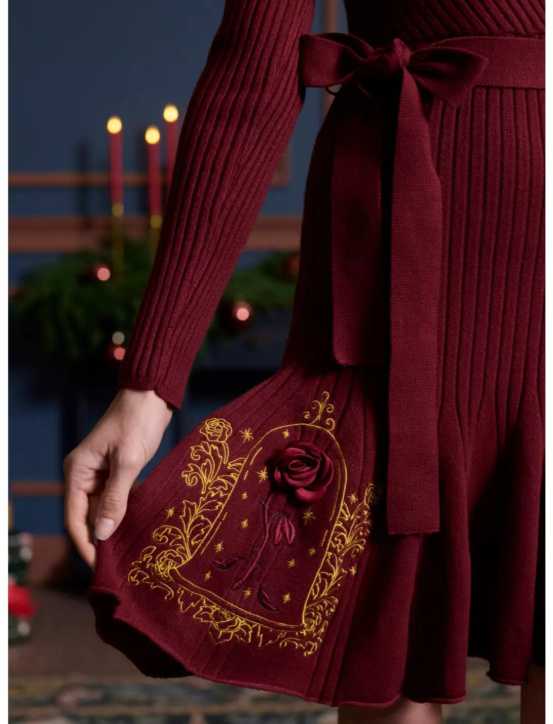 Pour les fêtes, habillez-vous comme au château de la Bête avec cette robe pull bordeaux inspirée de La Belle et la Bête !
