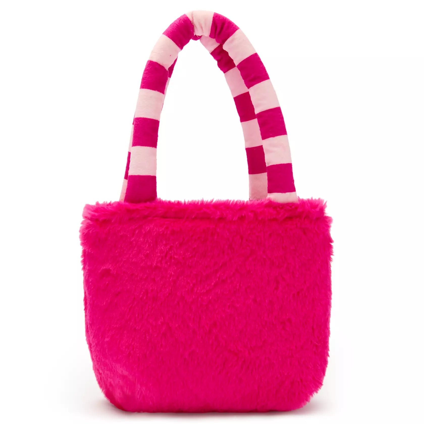 Impossible de passer inaperçue avec ce sac à main rose fuchsia en peluche toute douce, brodé des traits du Chat du Cheshire, le chat qui disparaît comme par magie. Ses anses rayées et sa bandoulière amovible vous garantissent un look irrésistible où que vous alliez !