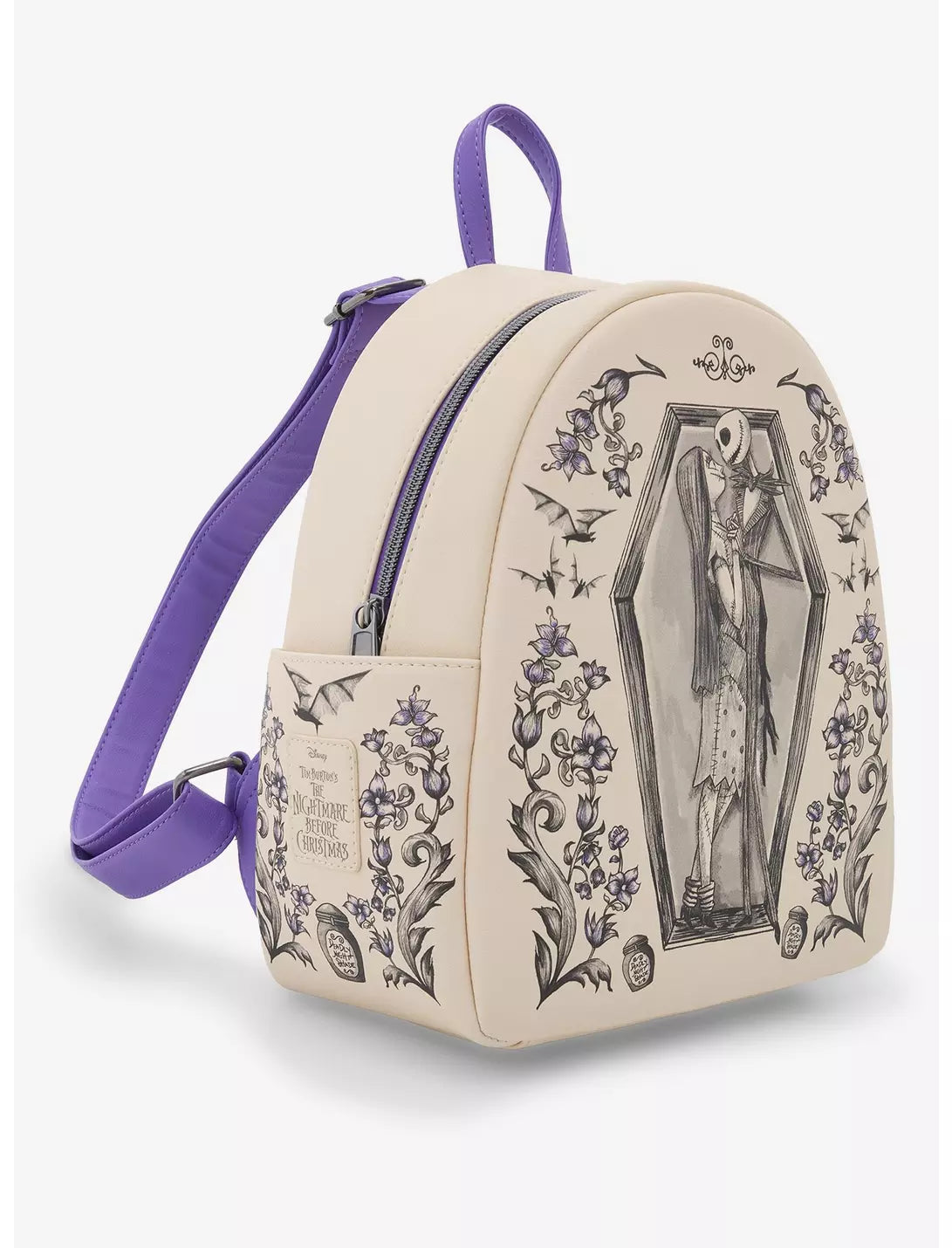 Ce mini sac à dos et vous ? C'est une évidence ! Affichez votre soutien au couple emblématique d'Halloween Town avec ce mini sac à dos inspiré de L'Étrange Noël de Monsieur Jack. Son illustration monochrome représente Jack et Sally dans un cercueil, entourés de fleurs et d'autres symboles. Il est doté de poches latérales, d'une poche intérieure, d'une poignée de transport et de bretelles réglables.