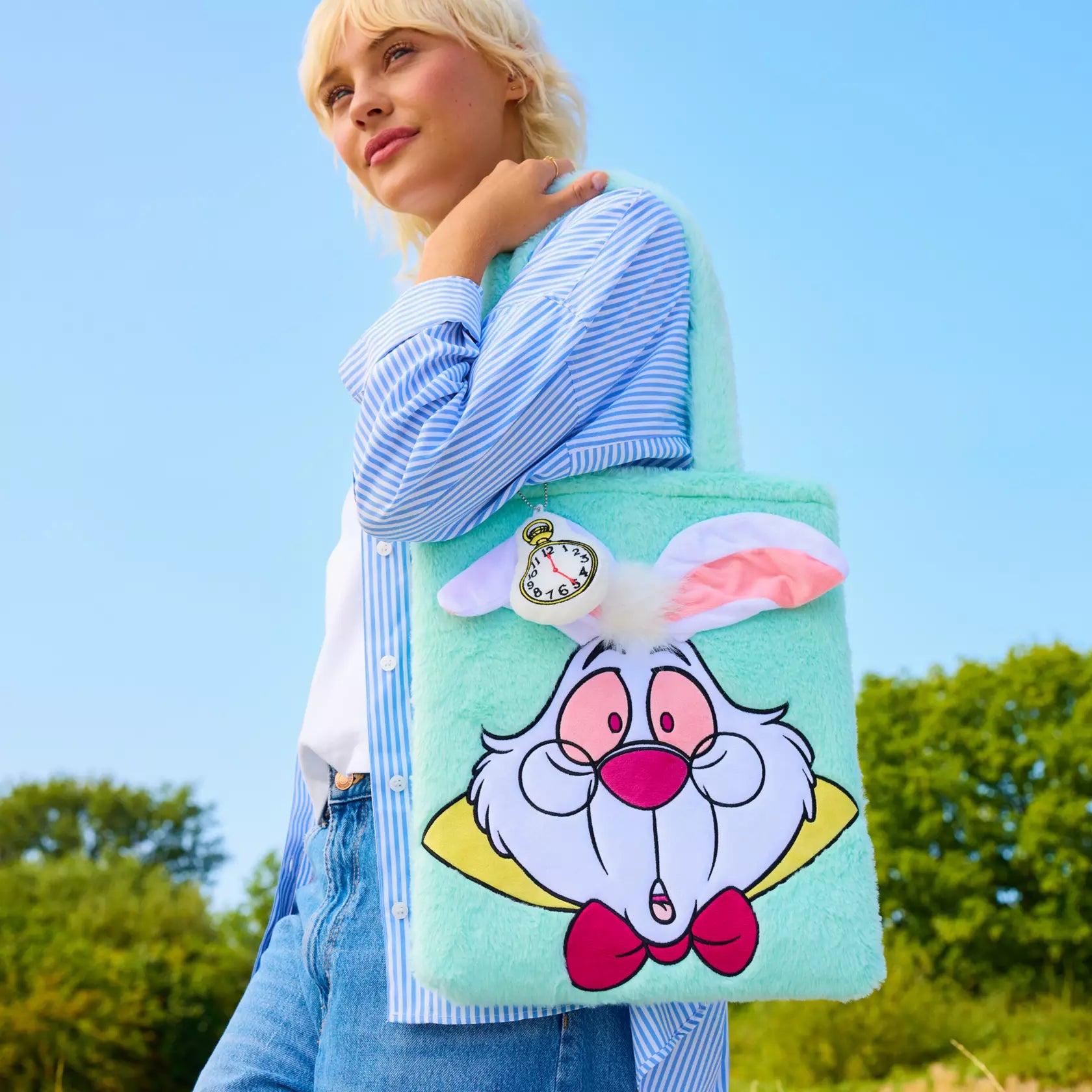 Si vous êtes en retard pour un rendez-vous important, glissez vos essentiels du quotidien dans ce cabas en peluche douce orné du Lapin Blanc d'Alice au Pays des Merveilles, et hop !